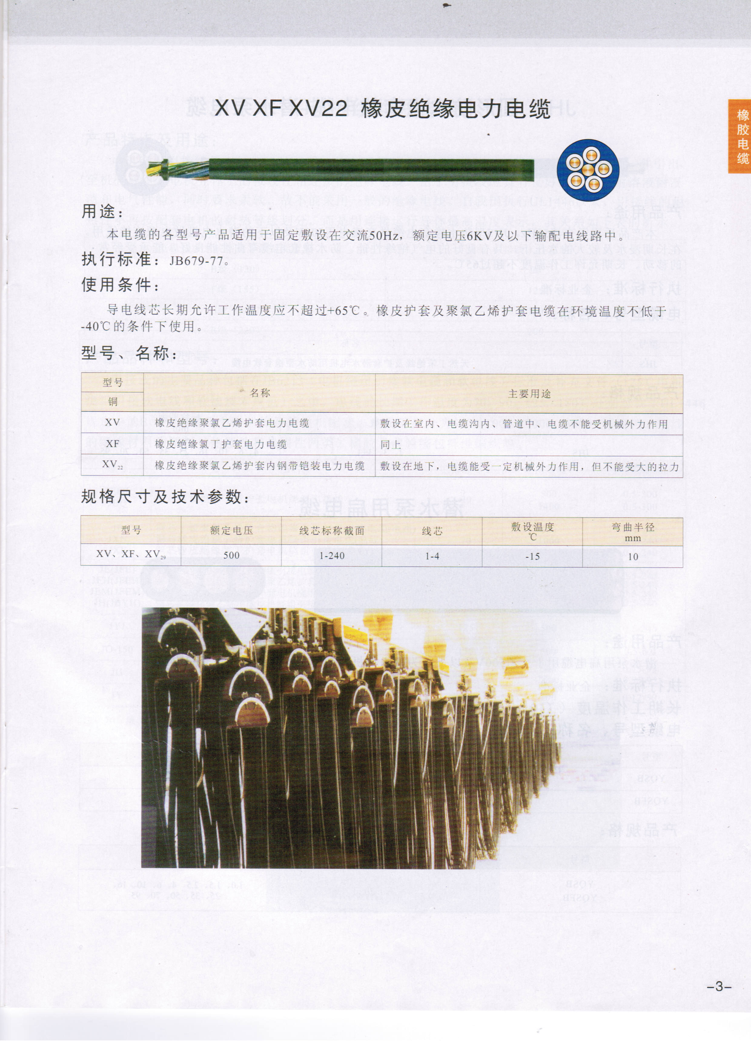 產(chǎn)品名稱: XV XF XV22橡皮絕緣電力電纜, | |