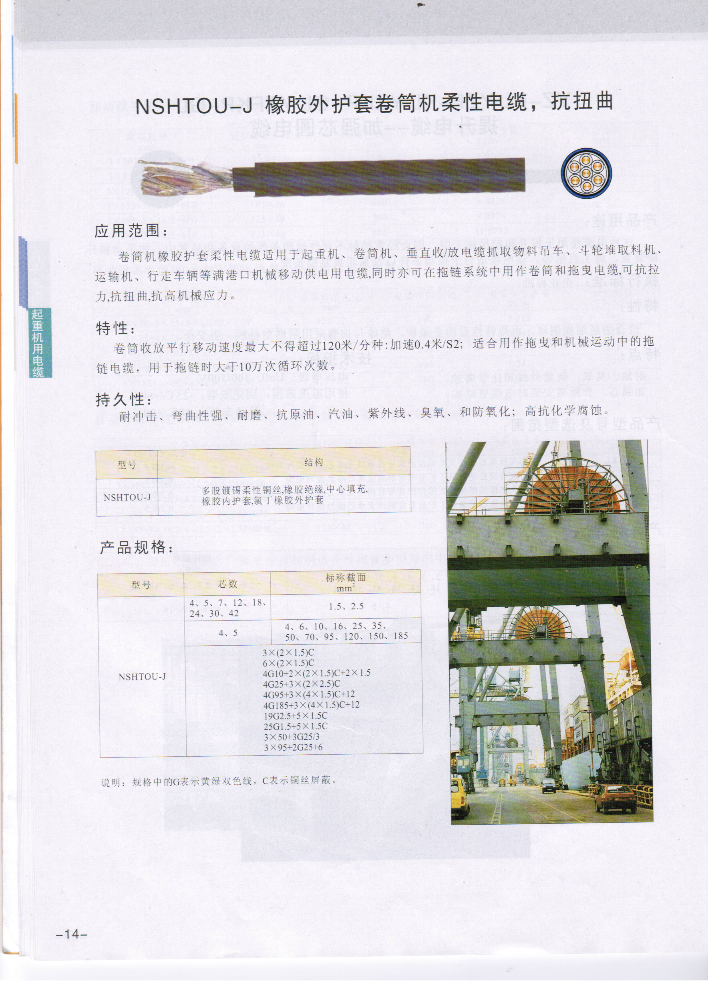 產(chǎn)品名稱: NSHTOU-J橡套外護(hù)套卷筒機(jī)柔性電纜,抗扭曲 | |