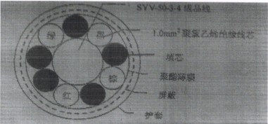 3. 成纜:一根SYV50-3成品線+4根1.0mm2絕緣線芯(適當(dāng)根數(shù)的聚氯乙烯絕緣線芯作為填芯)絞合并繞包聚酯薄膜。