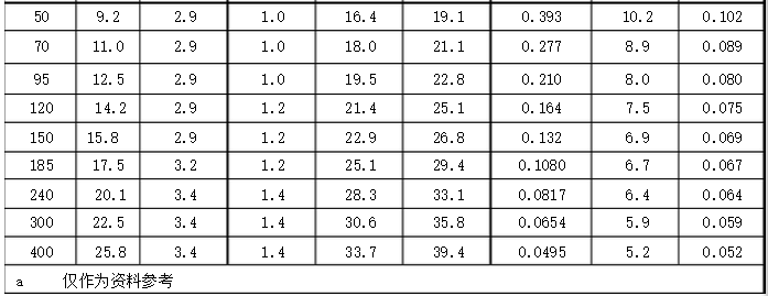注:并非每個類型都規(guī)定了導線尺寸或線芯數(shù)目