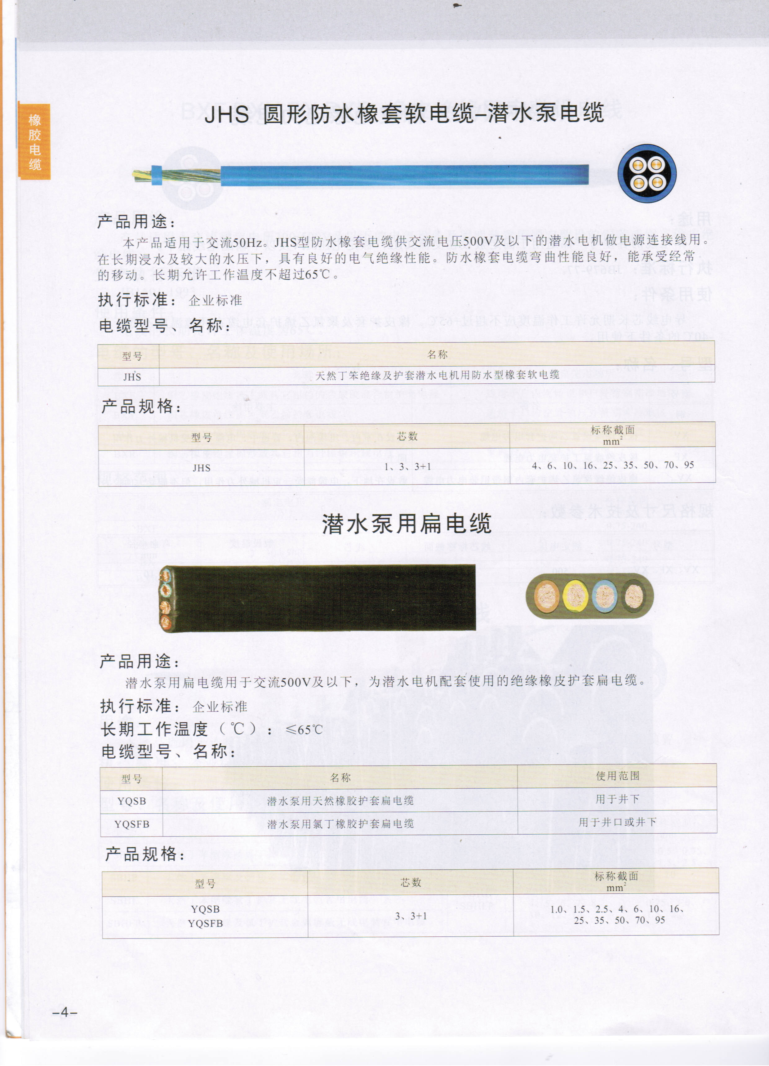 產(chǎn)品名稱: JHS圓形防水橡套軟電纜-潛水泵電纜,JHSB潛水泵用扁電纜 | |