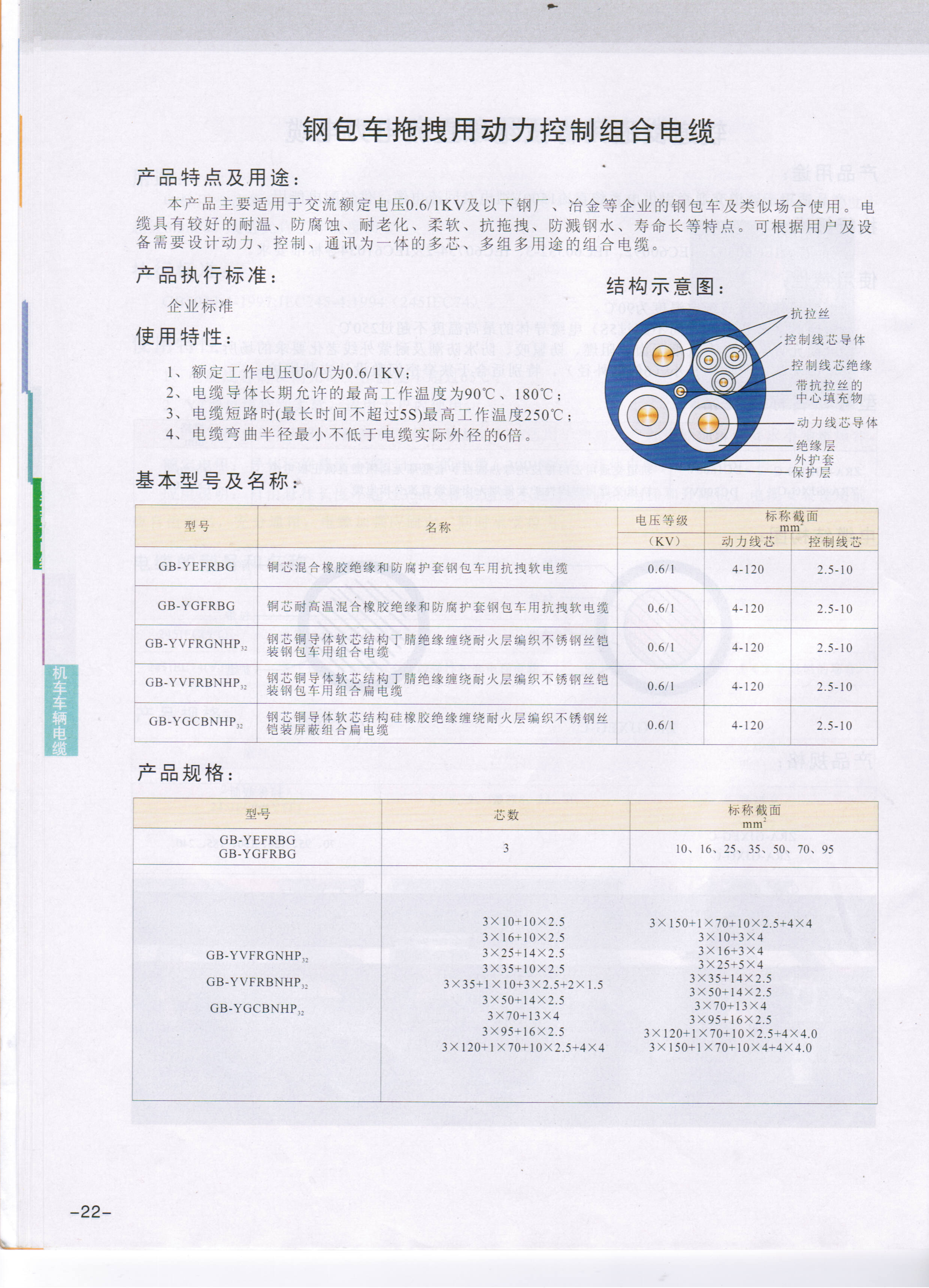 產(chǎn)品名稱: 鋼包車拖拽用動力控制組合電纜YEFRBG YVFRGNHP32 YGCBNHP32 YVFRBNHP32 YGFRBG | |