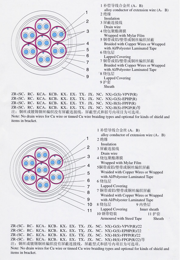 2 阻燃型在型號前加ZR,鎧裝電纜型號后加22,ZR192為進口PFA材料,耐溫260℃