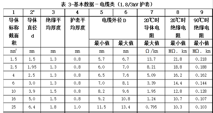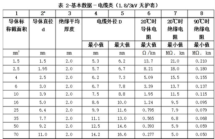 6.7.1無護套電纜(表1和表2-0.6/1kV和1.8/3Kv)