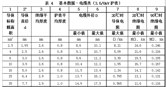 導體屏蔽 對于表 4中的電纜,其導體屏蔽見 EN 50264-1中。